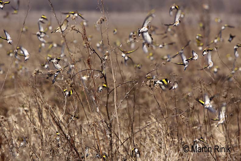 Flock of European Goldfinches