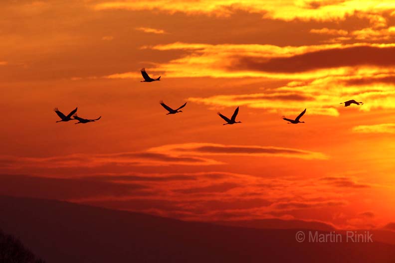 Common Crane, evening migration to roost site