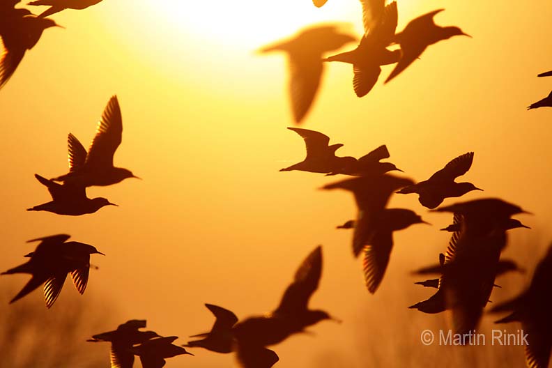 Flock of Ruffs at sunset