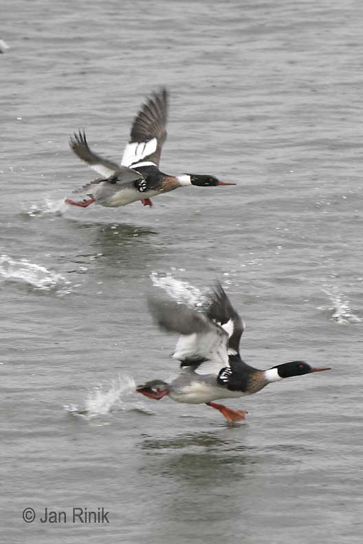 Red-breasted Mergansers taking off