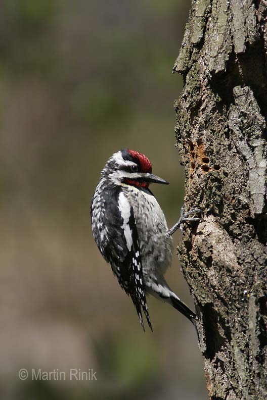 Yellow-bellied Sapsucker obtaining sap from drilled holes